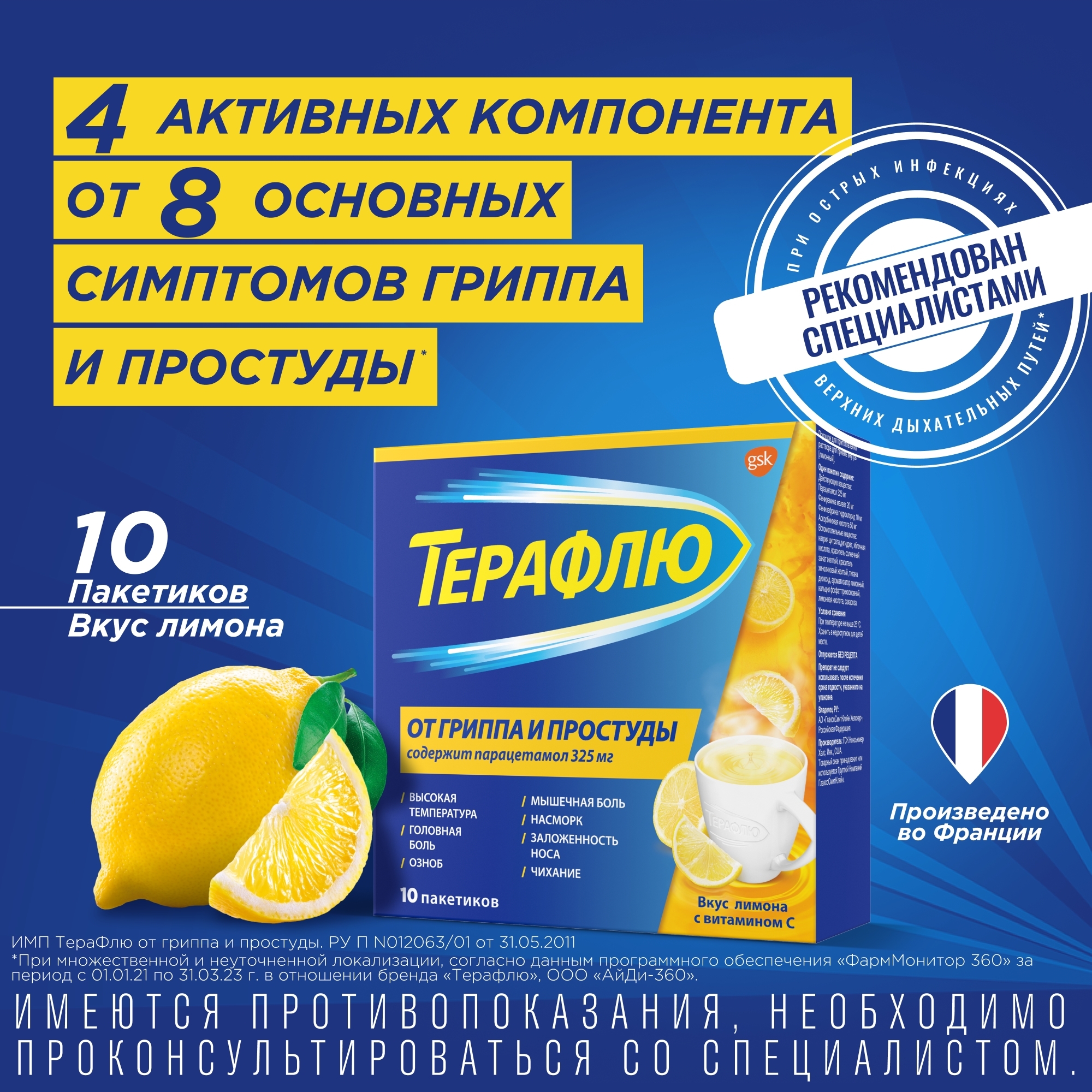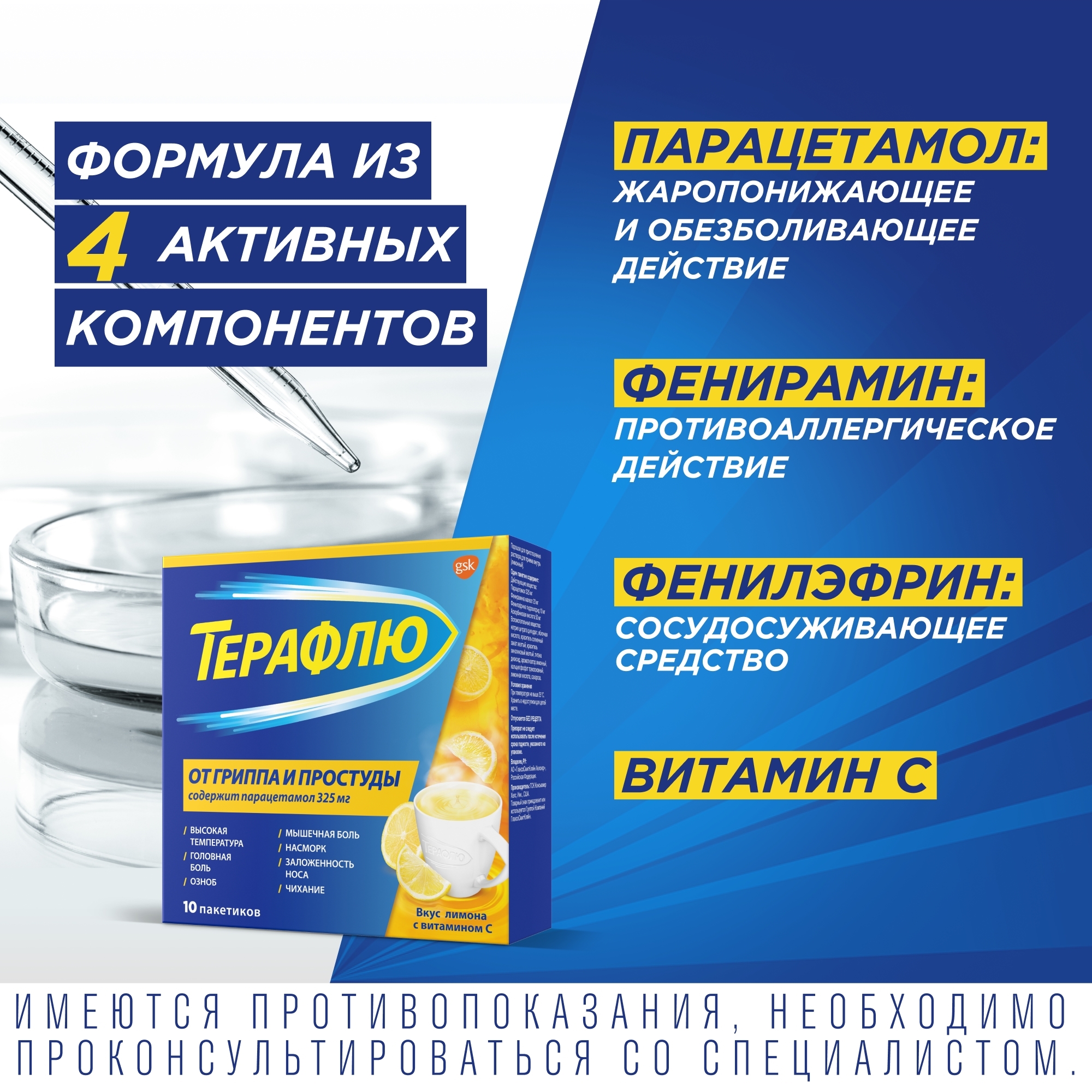 Терафлю от гриппа и простуды содержит: