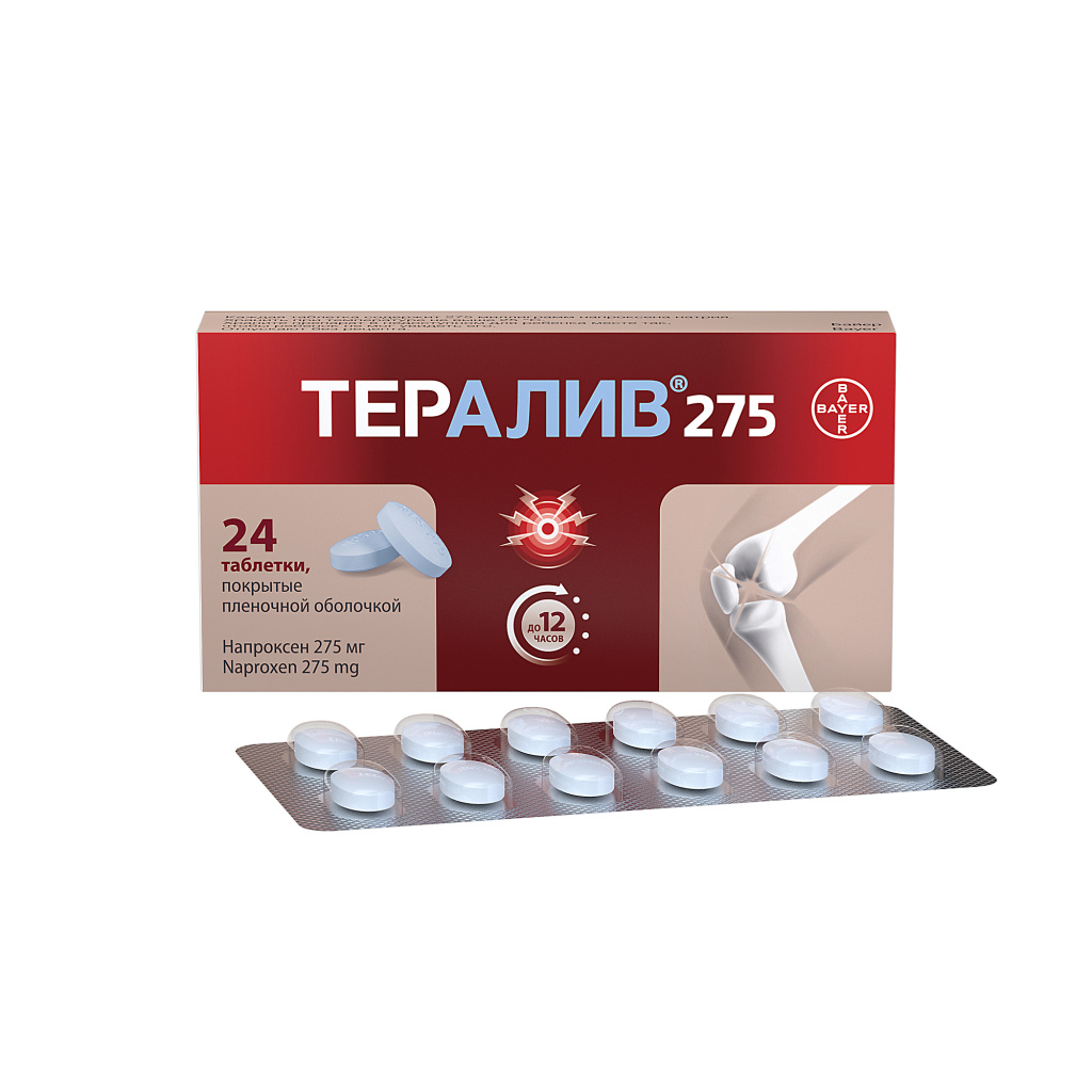 Препарат Тералив® 275 применяется для симптоматической терапии (для уменьшения боли, воспаления и снижения повышенной температуры тела) и на прогрессирование основного заболевания не влияет.