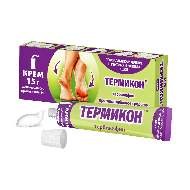 Тербинафин выделяется с грудным молоком. В случае применения кормящей матерью Термикона через кожу всасывается небольшое количество активного вещества, поэтому неблагоприятное воздействие на младенца маловероятно.
