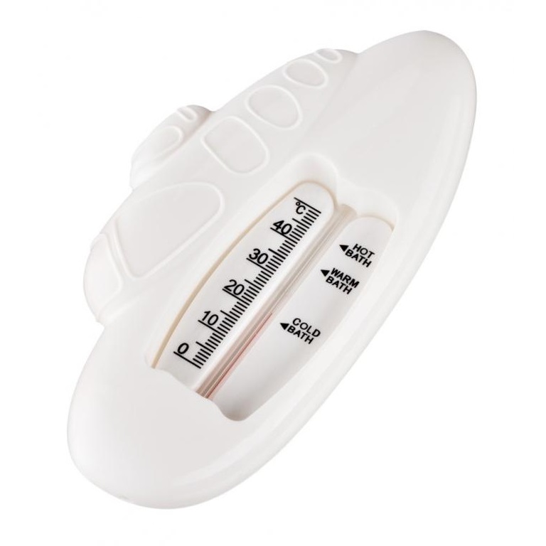 Этот термометр точно измеряет температуру воды в ванной. Изделие плавает на поверхности и может оставаться в воде во время всего купания, так как не содержит ртути. Стеклянная шкала наполнена керосином и находится в пластиковом корпусе. Он имеет четкую шкалу до 50°С, оптимальная температура воды для купания ребенка составляет 32-37°С.