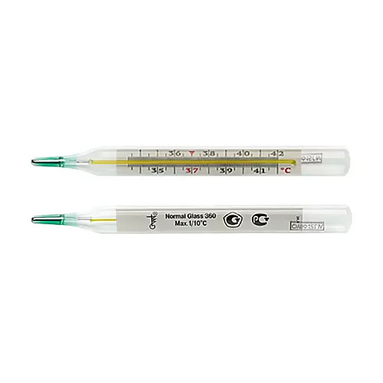 Термометр содержит ртуть! Ртуть вне термометра - опасна! Разрыв столбика ртути в капиллярной трубке над резервуаром со ртутью не является дефектом, он типичен для термометров с максимальным устройством.