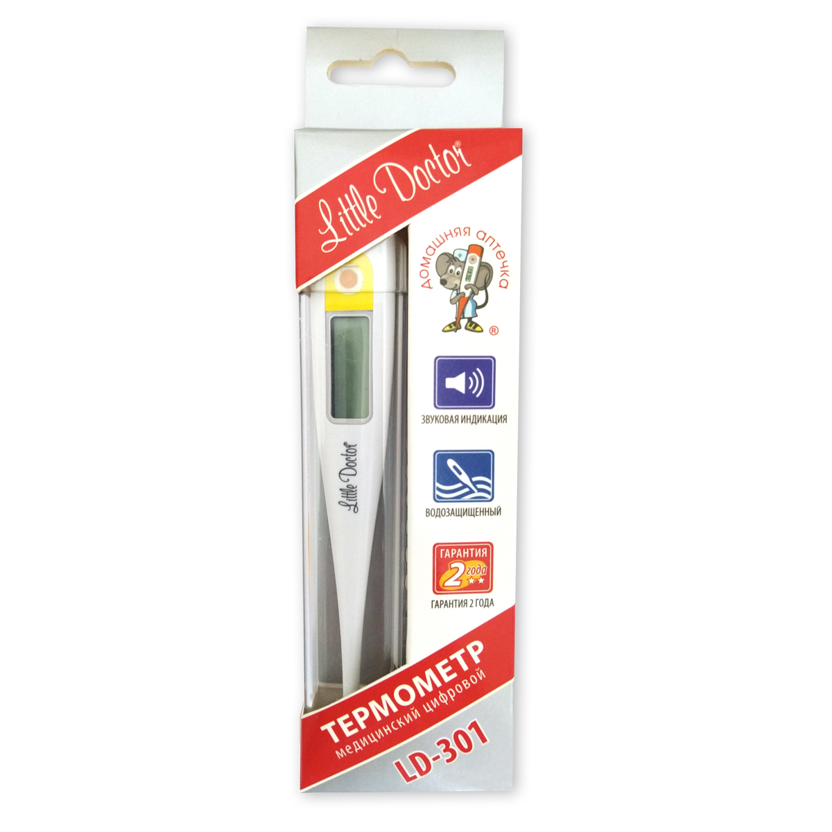 Электронный цифровой термометр Little Doctor LD-301 предназначен для измерения температуры тела ректальным, аксиллярным (подмышечным) и оральным способами. Прибор относится к категории медицинского оборудования для домашнего назначения и может быть использован всеми членами семьи. Управление прибором простое и осуществляется единственной кнопкой, расположенной рядом с дисплеем.