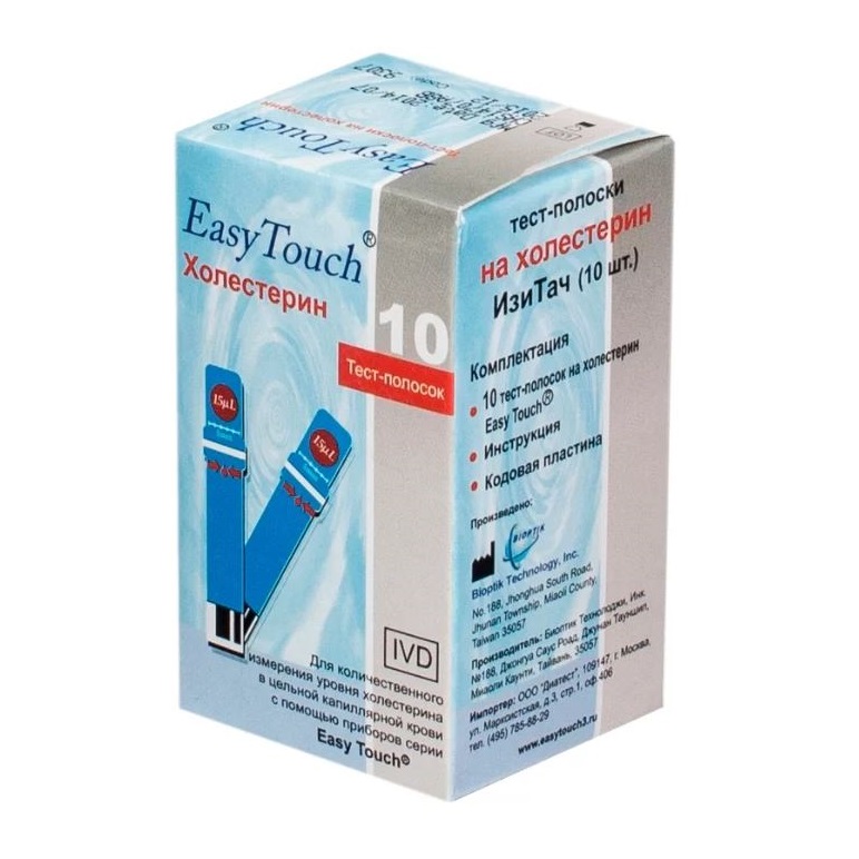 Тест-полоски EasyTouch® на холестерин предназначены для диагностики in vitro с прибором EasyTouch для самоконтроля уровня холестерина в свежей капиллярной цельной крови. Система подходит для самоконтроля при гиперхолестеринемии в домашних условиях или для профессионального использования.
