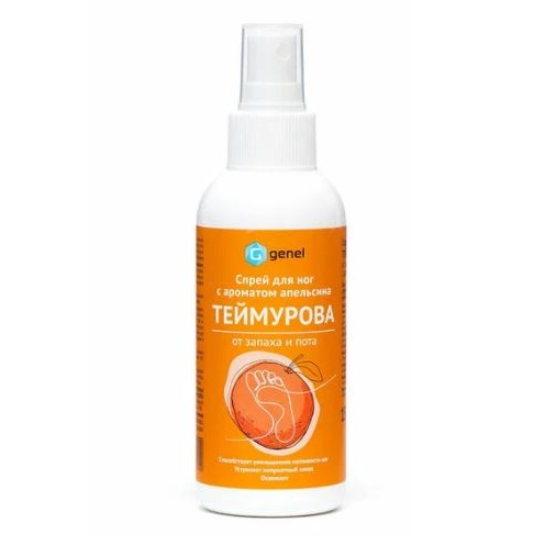 Спрей для ног Теймурова от запаха и пота G genel помогает бороться с неприятным запахом и потоотделением на ногах. Спрей рекомендован для ежедневного применения с целью устранения запаха и избыточной потливости ног, а также защиты от бактерий и грибков, которые могут вызывать неприятный запах. Спрей для ног имеет приятный легкий запах мяты и лаванды. Подходит для обработки обуви.