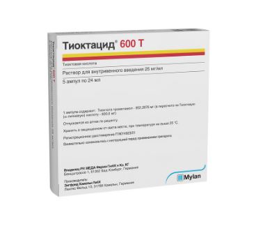 Активное вещество: тиоктата трометамол 952.3 мг, что соответствует содержанию тиоктовой (α-липоевой) кислоты 600 мг.