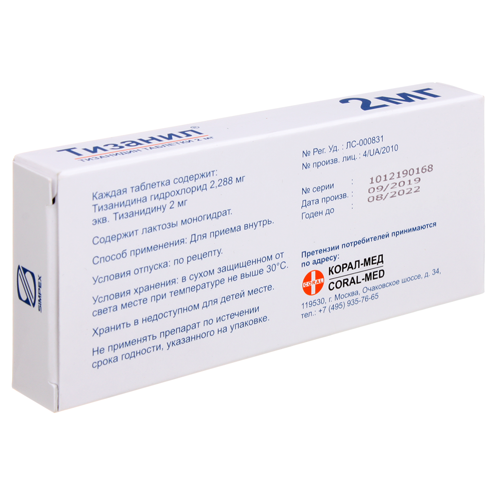 При болезненном мышечном спазме препарат Тизанил® применяют, как правило, в дозе 2 мг или 4 мг 3 раза в день.