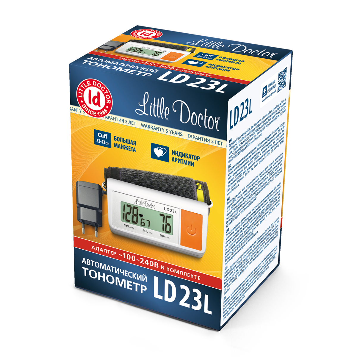 Отличие от базовой модели тонометра Little Doctor LD23 заключается в том, что в комплект поставки модели тонометра Little Doctor LD23L, помимо манжеты большего диаметра, входит стабилизированный источник электропитания - сетевой адаптер Little Doctor LD-N057. Различие между моделями тонометров Little Doctor LD23L и Little Doctor LD23A в разных типах манжет. Правильный выбор манжеты способствует эффективности показателей при измерении артериального давления.
