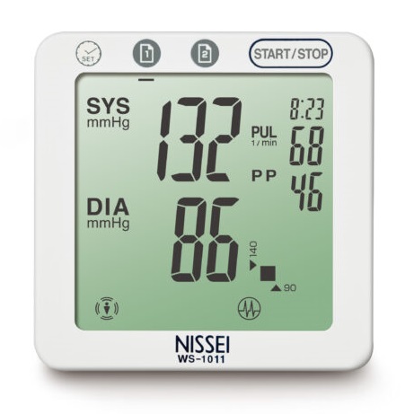 Тонометр Nissei WS-1011 имеет сенсорный дисплей, управление прибором осуществляется легким касанием пальцев. Прибор также оснащен индикатором аритмии и индикатором помех, который в случае обнаружения внешнего шума, влияющего на точность результатов измерения, на дисплее появится специальный символ. Процесс измерения необходимо будет повторить.