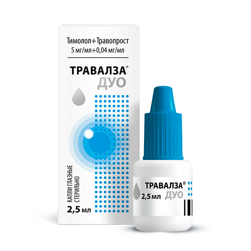 Препарат ТРАВАЛЗА® ДУО содержит два действующих вещества: тимолол и травопрост.