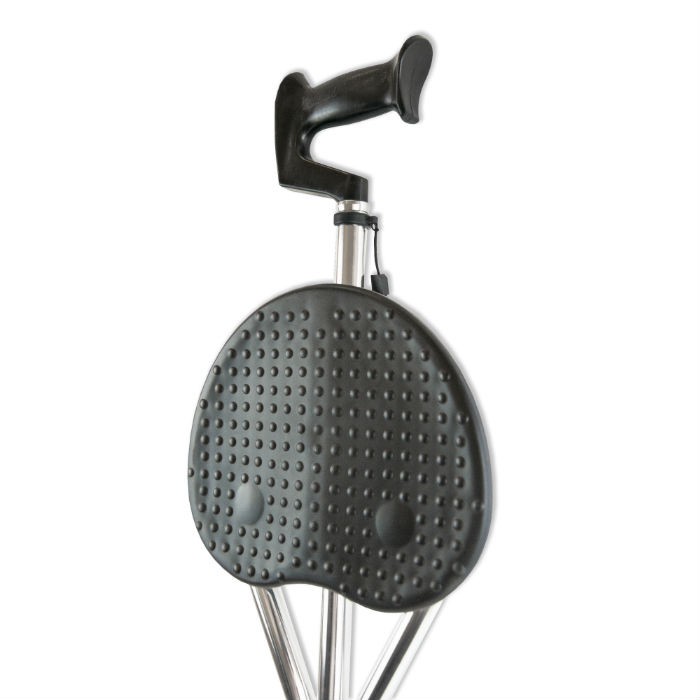 Трость AMRUS AMCS 37 складная на трех опорах с сиденьем. Позволяет чередовать ходьбу с отдыхом. Снабжена пластиковой нескользящей рукоятью прямоугольной формы с ограничителями для кисти.