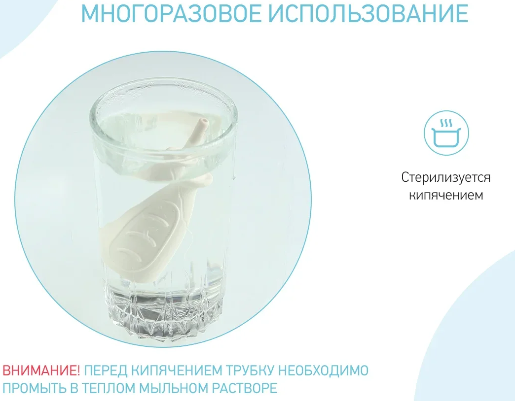 После использования тщательно промойте трубку в мыльном растворе. Прокипятите в дистиллированной воде в течение 30 мин. Перед повторным применением изделие следует стерилизовать.