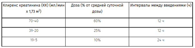 Коррекция дозы у взрослых пациентов с нарушением функции почек