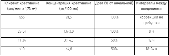 Коррекция дозы у взрослых пациентов с нарушением функции почек