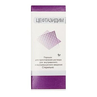 активное вещество: цефтазидим (в виде цефтазидима пентагидрата) - 1,0 г и 2,0 г;Максимальная концентрация (Cmax) после внутримышечного введения в дозах 0,5 и 1 г - 17 мг/л и 39 мг/л соответственно, время достижения максимальной концентрации (ТСmax) - 1 ч. Сmax после внутривенного болюсного введения в дозах 0,5, 1 и 2 г - 42 мг/л, 69 мг/л и 170 мг/л соответственно. Терапевтические сывороточные концентрации сохраняются в течение 8 - 12 ч после внутривенного и внутримышечного введения. Связь с белками плазмы - менее 15 %. Концентрации цефтазидима, превышающие минимальную подавляющую концентрацию для большинства распространенных патогенных микроорганизмов, могут быть достигнуты в костной ткани, тканях сердца, желчи, мокроте, синовиальной, внутриглазной, плевральной и перитонеальной жидкостях. Легко проникает через плаценту и выделяется с грудным молоком. При отсутствии воспалительного процесса плохо проникает через гематоэнцефалический барьер (ГЭБ). При менингите концентрация в спинномозговой жидкости (СМЖ) достигает терапевтического уровня (4 - 20 мг/л и выше).
