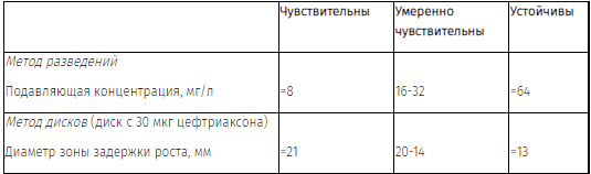 *Некоторые изоляты этих видов устойчивы к цефтриаксону из-за образования β-лактамаз.