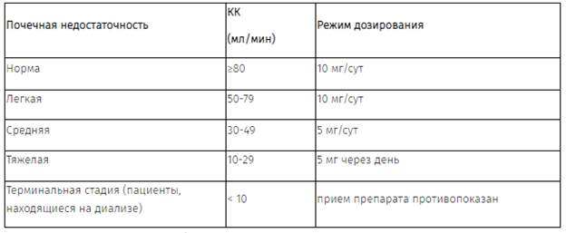Детям с почечной недостаточностью дозу корректируют с учетом КК и массы тела.