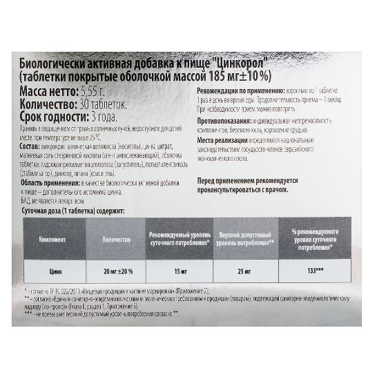 «Цинкорол» - дополнительный источник цинка в органической форме для его более быстрого и полного усвоения.