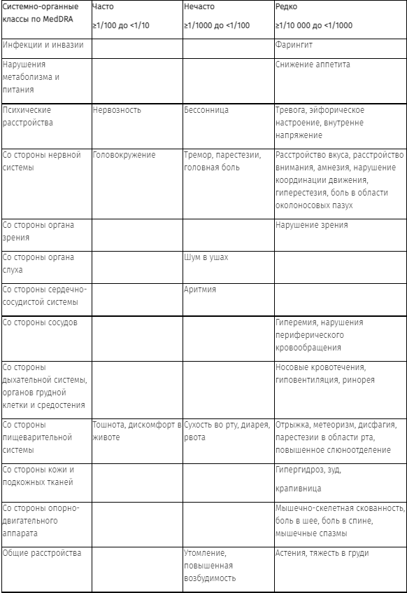 Частота нежелательных лекарственных реакций классифицирована в соответствии с рекомендациями Всемирной организации здравоохранения.