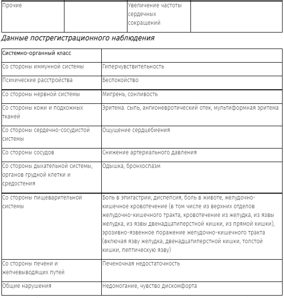 Если у пациента на фоне приема препарата развивается кровотечение или изъязвление ЖКТ, необходимо немедленно его отменить. В любой момент лечения любыми НПВП могут возникать потенциально летальные кровотечения, изъязвления и перфорации ЖКТ как с предвестниками и тяжелыми желудочно-кишечными осложнениями в анамнезе, так и без них. Эти осложнения, как правило, более тяжело проявляются у пожилых пациентов.