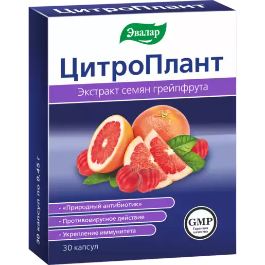 Цитроплант – это экстракт семян грейпфрута в капсулах, дополнительно усиленный экстрактом ацеролы, витамином Е и селеном.