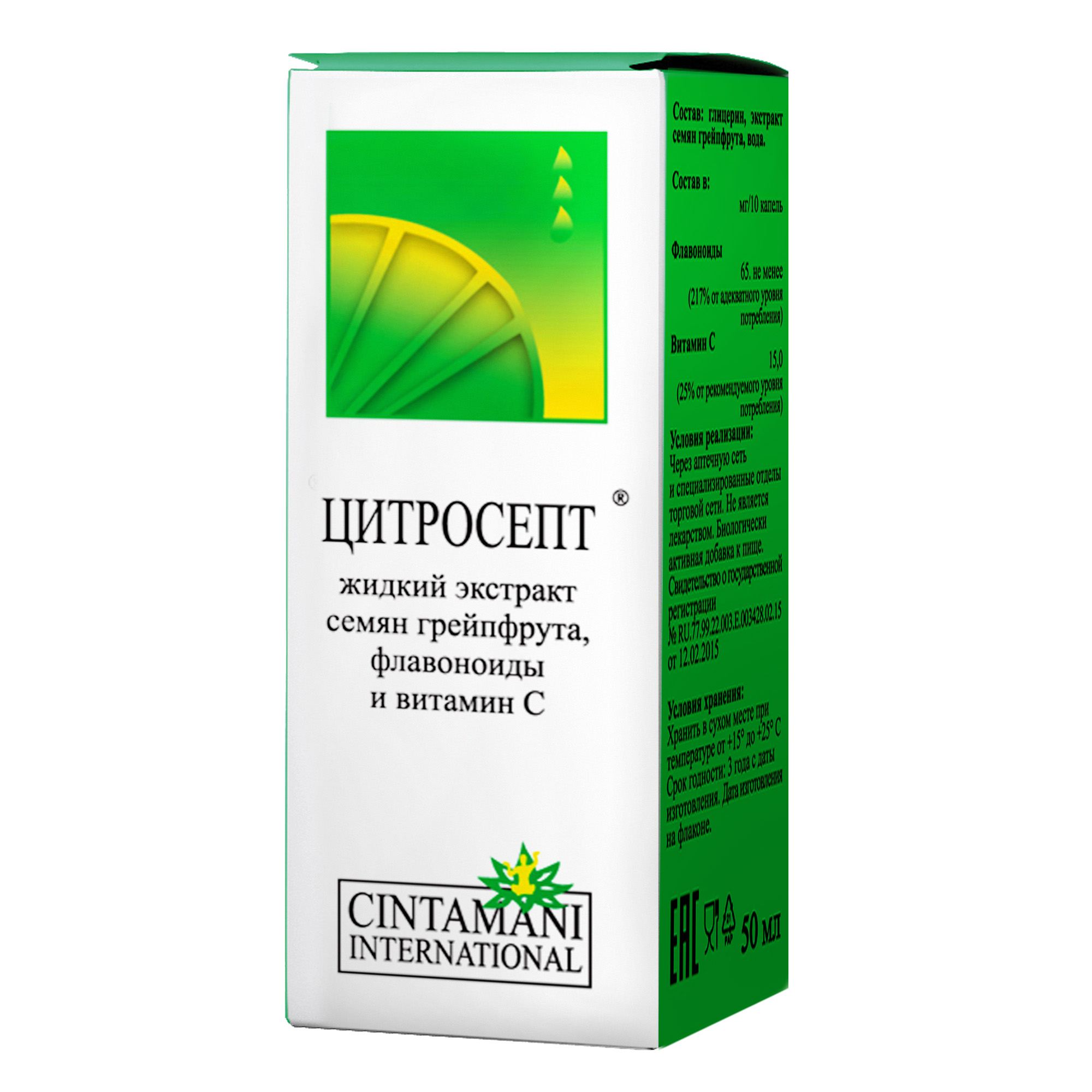 Цитросепт — биофлавоноиды стандартизированного 33% экстракта семян грейпфрута. Противогрибковое (фунгицидное и фунгистатическое), антибактериальное, противовирусное действие.