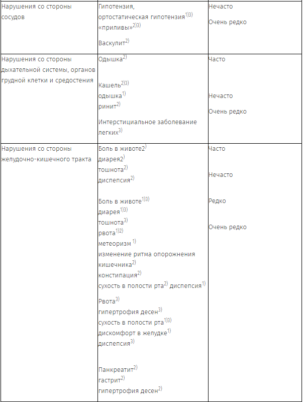 Внутри системно-органных классов по частоте возникновения нежелательных реакций используются следующие категории: очень часто (≥ 1/10); часто (≥ 1/100, < 1/10); нечасто (≥1/1000, < 1/100); редко