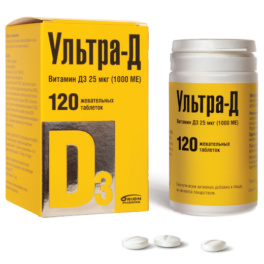 Ультра-Д Витамин Д3 25 мкг (1000 МЕ) рекомендуется к применению: в качестве биологически активной добавки к пище - дополнительного источника витамина D.