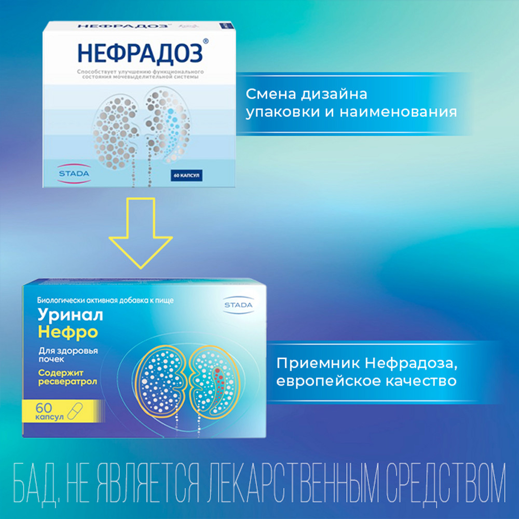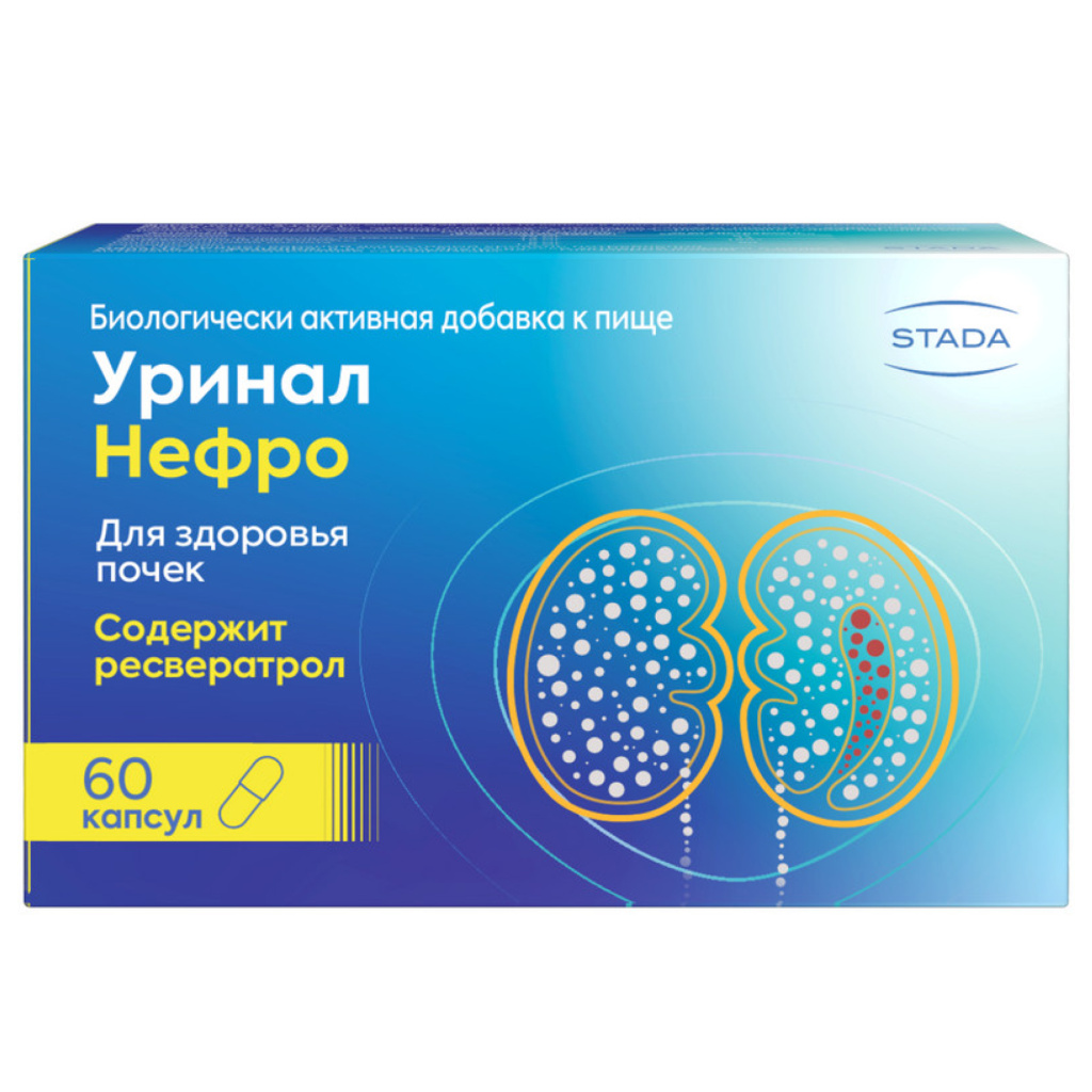 Биологически активная добавка к пище «Уринал Нефро» является преемником комплекса «НефраДоз (NefraDoz)». Мочекаменная болезнь (МКБ) является сегодня наиболее распространенным урологическим заболеванием: пациенты с МКБ составляют 30-40% в урологическом стационаре и, в основном, это пациенты трудоспособного возраста – 30-50 лет. По статистике, 12% мужчин и 5% женщин хотя бы раз в течение жизни переносят почечную колику, как правило, обусловленную МКБ. Более того, примерно 50% пациентов, у которых ранее была диагностирована МКБ, подвержены рецидиву заболевания в течение ближайших 10 лет. Натуральные растительные компоненты комплекса Уринал Нефро содержат биологически активные вещества (биоантрахиноны, ресвератрол, глицирризиновую кислоту, салидрозиды, икариин, и т.д.), которые улучшают функциональное состояние мочевыделительной системы и способствуют снижению камнеобразования. Компоненты Уринал Нефро способствуют облегчению выведения камней и снижению риска повторного камнеобразования вне зависимости от их химического состава (в том числе при фосфатном, карбонатном, оксалатном и уратном камнеобразовании).