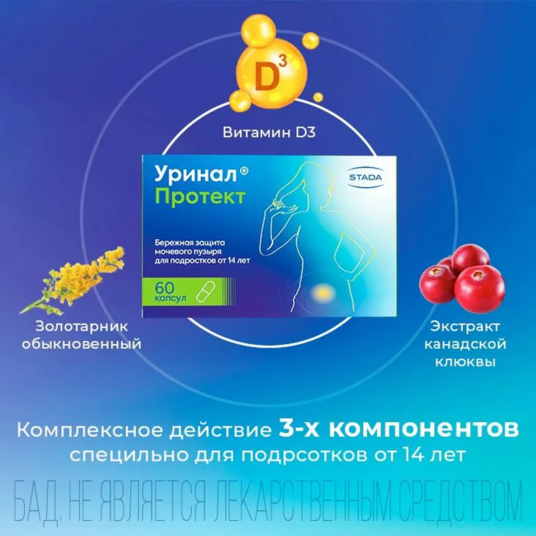 Уринал Протект содержит комбинацию трех активных компонентов в оптимальных дозах, что позволяет ему обеспечивать комплексное действие для полноценной защиты почек, мочевого пузыря и мочевыводящих путей от вредоносных бактерий и негативных факторов окружающей среды.