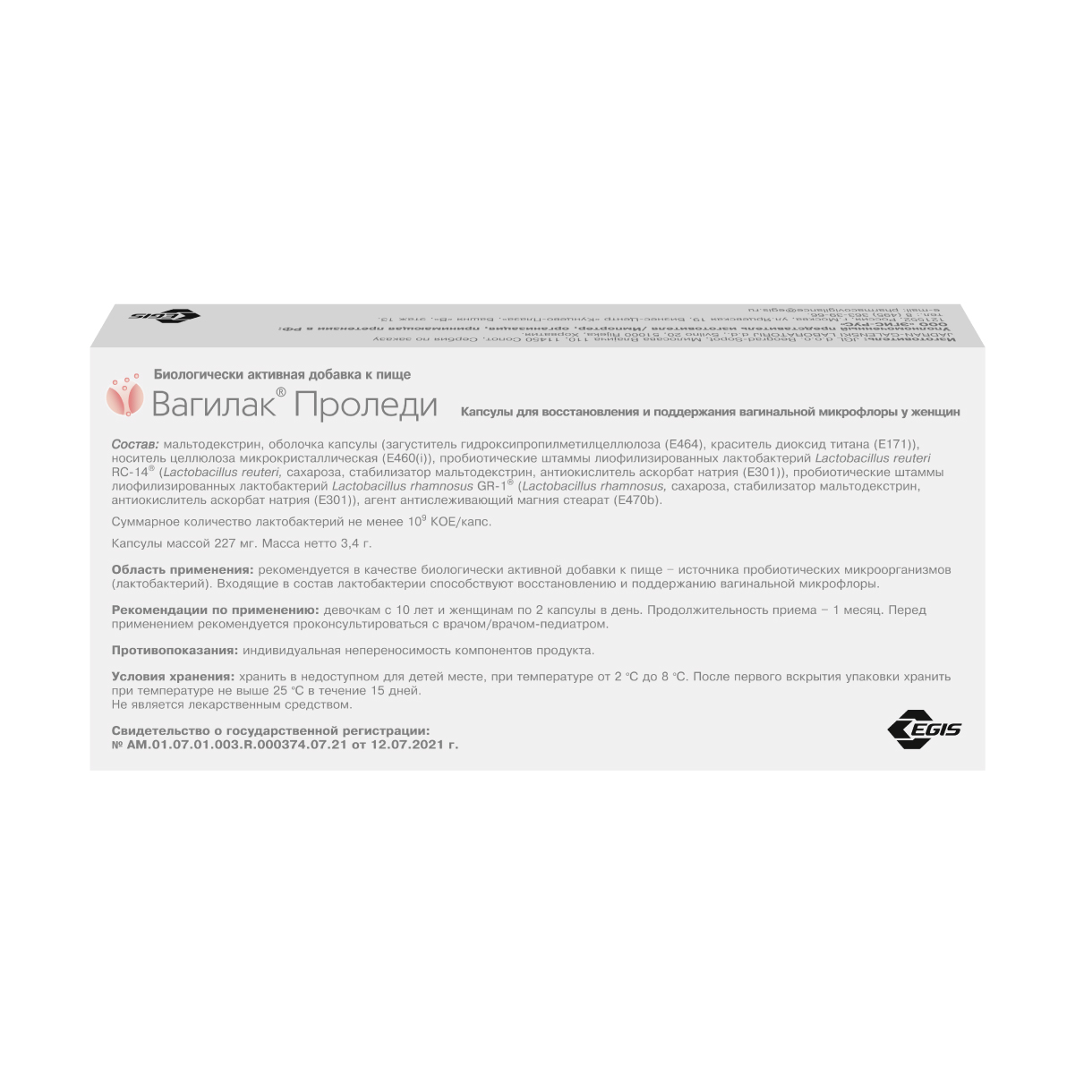 Девочкам с 10 лет и женщинам по 2 капсулы в день. Стандартная продолжительность приема биологически активной добавки к пище «Вагилак® Проледи» – 1 месяц, после консультации с врачом может быть продлена.