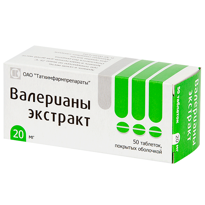 Активное вещество: валерианы экстракта густого (с содержанием сложных эфиров карбоновых кислот, в пересчёте на этиловый эфир валереновой кислоты, не менее 1,8 %) - 20 мг.
