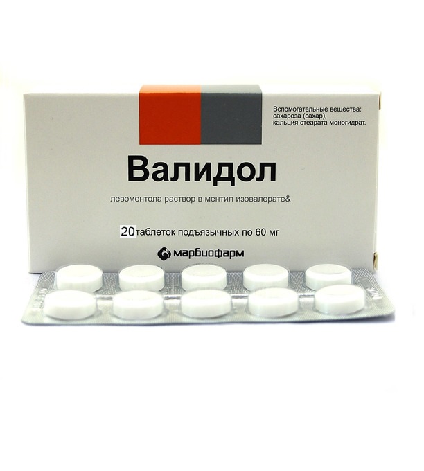 Активное вещество: левоментола раствор в ментил изовалерате (валидол) 0.06 г.