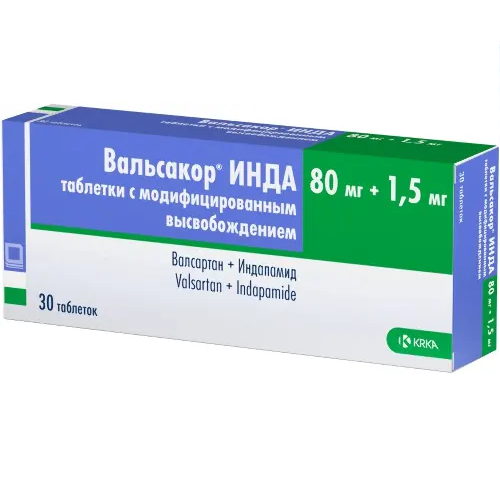 Каждая таблетка содержит 80 мг валсартана и 1,5 мг индапамида.