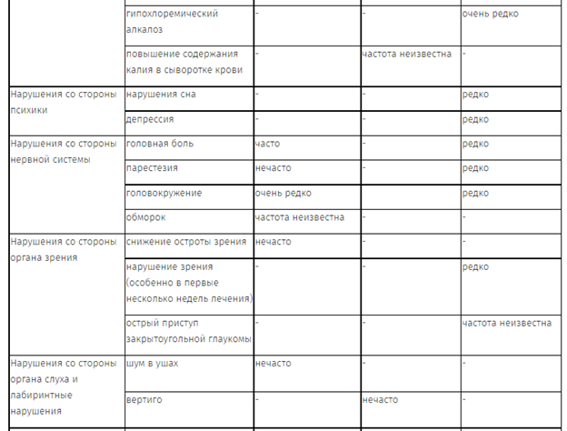 Гидрохлоротиазид может вызывать идиосинкразическую реакцию, приводящую к развитию острой миопии и острому приступу вторичной закрытоугольной глаукомы. Симптомы включают в себя: внезапное снижение остроты зрения или боль в глазах, которые проявляются, как правило, в течение нескольких часов или недель от начала терапии гидрохлоротиазидом. При отсутствии лечения острая закрытоугольная глаукома может привести к необратимой потере зрения. При появлении симптомов необходимо как можно быстрее прекратить прием гидрохлоротиазида. Если внутриглазное давление остается неконтролируемым, может потребоваться неотложное медикаментозное лечение или хирургическое вмешательство. Факторами риска развития острой закрытоугольной глаукомы являются: аллергическая реакция на сульфонамиды или пенициллин в анамнезе.