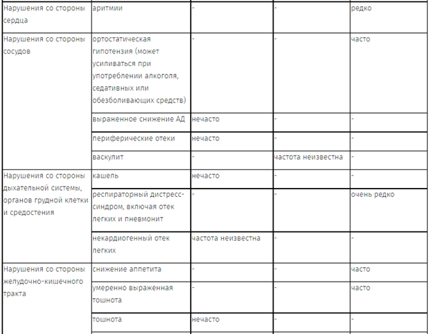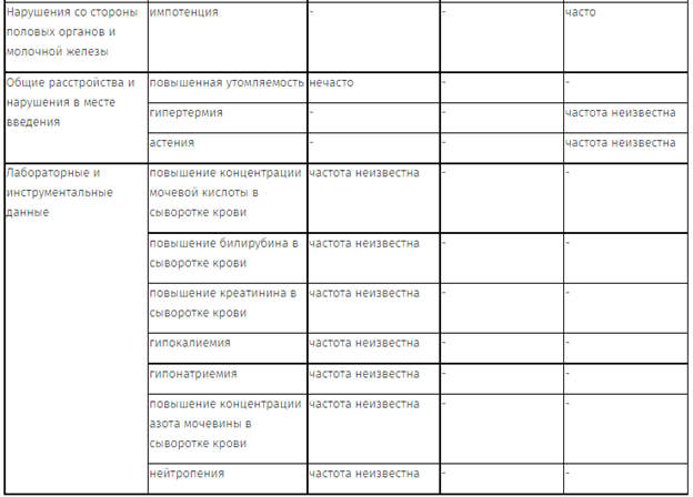 Для оценки частоты HP использованы следующие критерии (согласно классификации Всемирной организации здравоохранения (ВОЗ)): очень часто (≥10%); часто (≥1% и <10%); нечасто (≥0,1% и <1%); редко (≥0,01% и <0,1%); очень редко (<0,01 %), частота неизвестна (частоту развития по имеющимся данным установить невозможно
