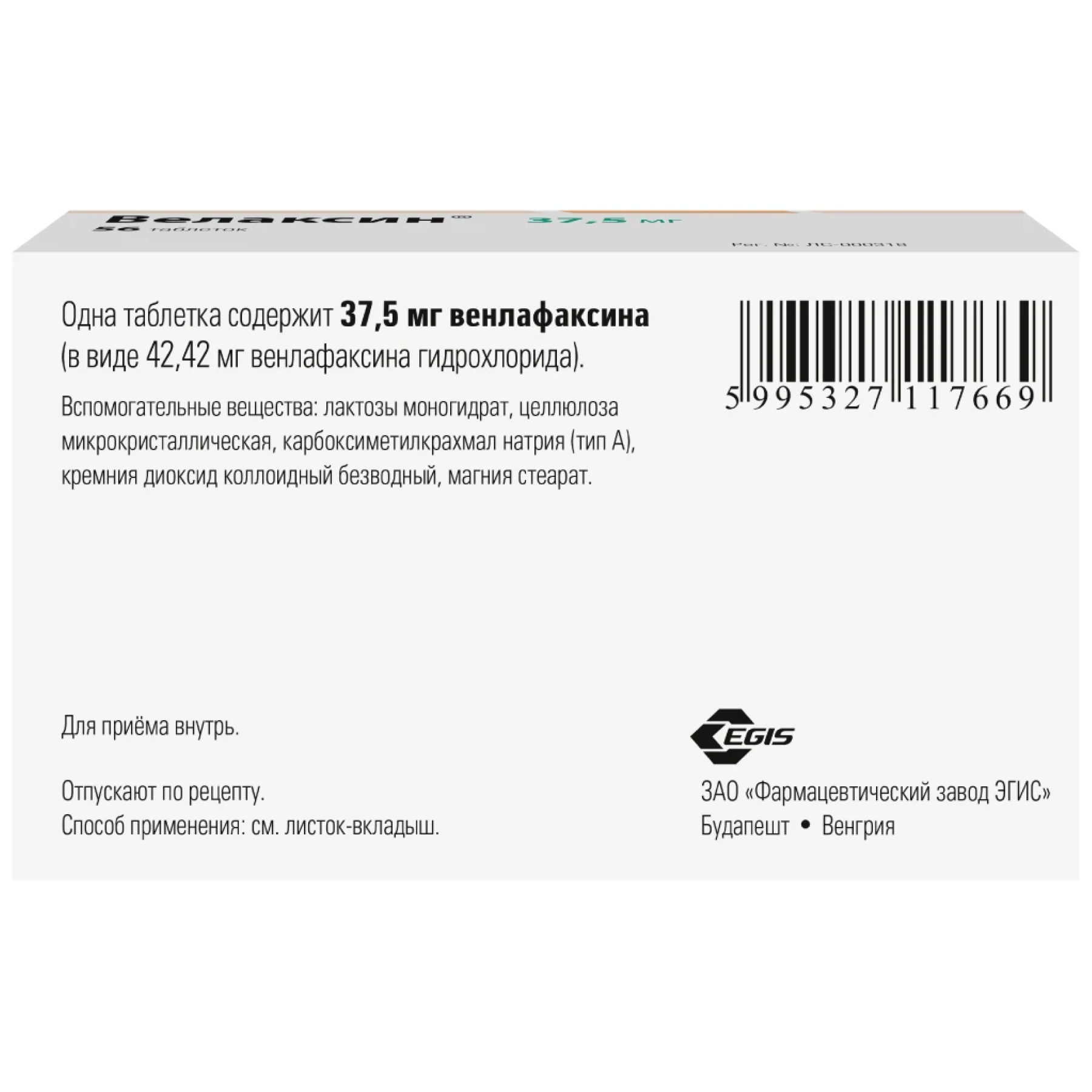При назначении препарата Велаксин® больным с непереносимостью лактозы следует учитывать содержание лактозы (84.93 мг в каждой таблетке 37.5 мг; 169.86 мг в каждой таблетке 75 мг).