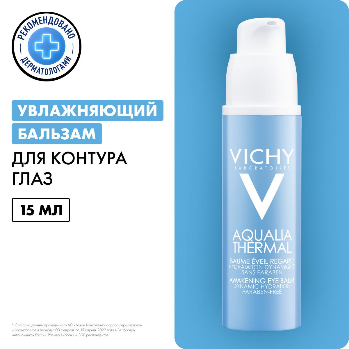 Чувствительная и тонкая кожа области вокруг глаз нуждается в деликатном уходе. Thermal Baume Eveil Regard содержит необходимый комплекс активных компонентов, которые оказывают на нежную кожу мощное увлажняющее, восстанавливающее и тонизирующее действие. Пробуждающий бальзам Виши Аквалия Термаль легко впитывается, насыщает эпидермис влагой и улучшает обменные процессы. В результате применения кожа в области вокруг глаз заметно преображается, разлаживается, становится ровной, гладкой и сияет жизненной энергией.
