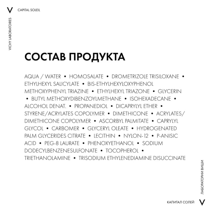 Очень водостойкая формула. Соответствует европейским требованиям к солнцезащитным средствам.