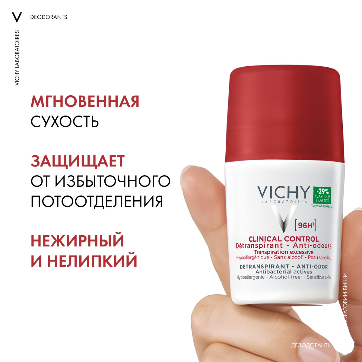 Vichy Clinical Control Déodorant Anti-Transpirant 96 H – мощный Дезодорант-Антиперспирант, который помогает сохранить свежесть и комфорт в течение дня. Виши Clinical Control Дезодорант-Антиперспирант 96 ч против избыточного потоотделения каждый день защищает от появления запаха, смягчает кожу, препятствует проявлению раздражения и сухости.