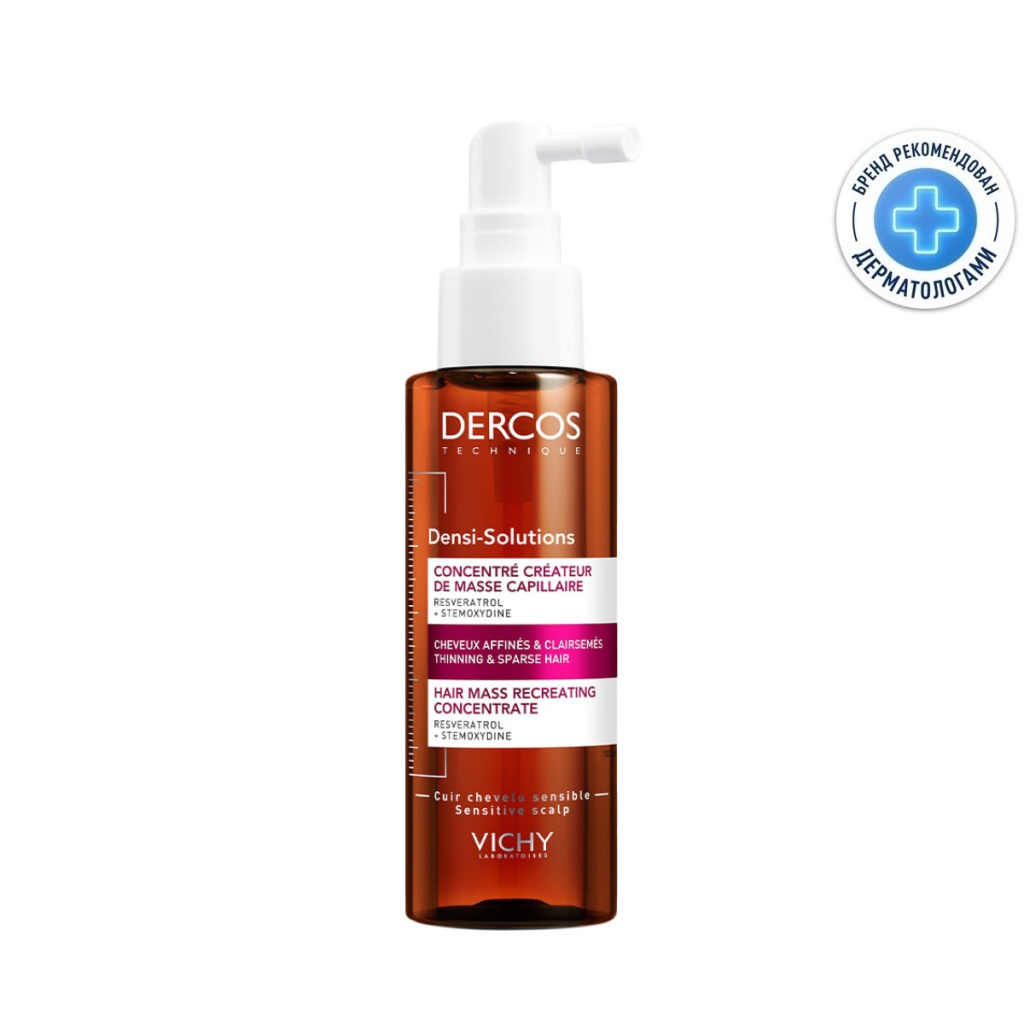 Специалисты компании Виши создали уникальную Сыворотку для роста волос, которая вошла в обновленную инновационную серию ухода за тонкими ослабленными и поврежденными волосами. Средство улучшает микроциркуляцию кожи головы, насыщает волосы питательными веществами, активные компоненты успокаивают кожу головы, стимулируют волосяные луковицы работать в полную силу, что обеспечивает рост новых волос. Сыворотка Vichy Dercos Densi-Solutions имеет легкую текстуру, поэтому действует без утяжеления и липкости. Клинические исследования доказали, что спустя 6 недель использования Сыворотки возрождается около 1000 новых волосков.