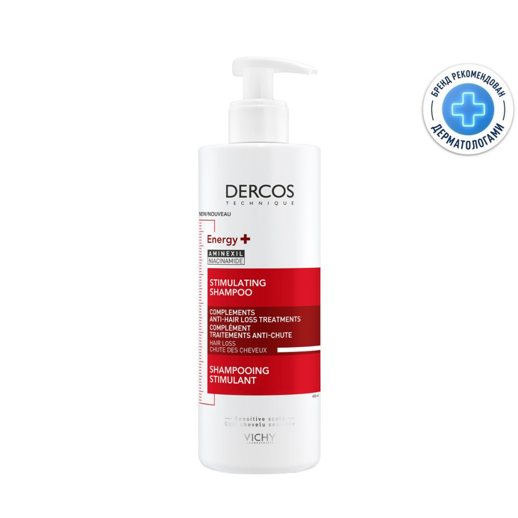 Шампунь с перламутровой гелевой текстурой Vichy Dercos Shampooing énergisant anti-chute содержит запатентованный комплекс Aminexil, который активизирует микроциркуляцию кожи головы, замедляет уплотнение коллагеновых оболочек волосяных фолликулов, восстанавливает здоровую структуру стержней волос. Результат – сокращение выпадения и ускорение роста волос, устранение их ломкости и сечения. Виши Деркос Шампунь Тонизирующий против выпадения волос сохраняет естественный уровень рН и гидролипидную защиту кожи головы и волос, поэтому подходит для частого использования. 78% из 154 участников трехнедельного дерматологического тестирования отметили, что выпадение существенно уменьшилось, а 76% – волосы стали сильнее от корней до кончиков. Применение этого шампуня повышает эффективность ампул Виши Деркос Аминексил ПРО против выпадения волос для мужчин и для женщин.