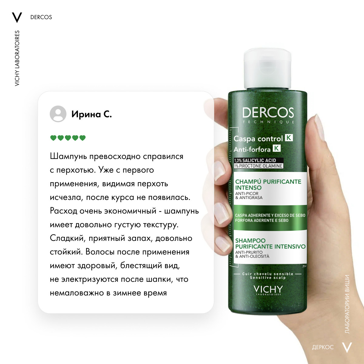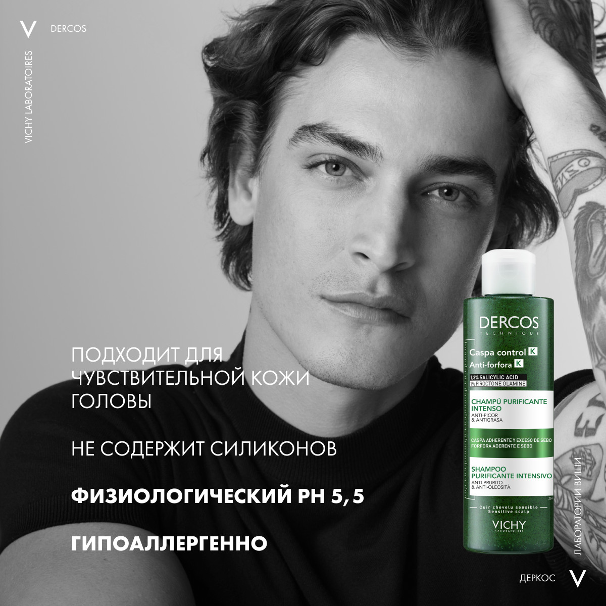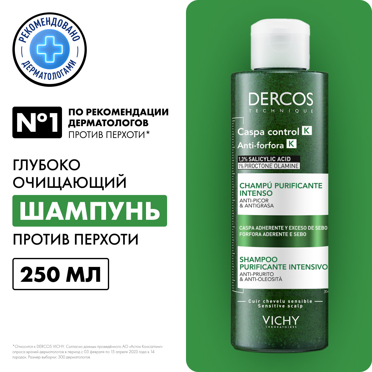 Vichy Dercos Anti-dandruff K shampoo - эффективное инновационное средство для борьбы с перхотью, действующее как шампунь, пилинг и маска. Интенсивный Шампунь-пилинг Виши бережно удаляет себум и прочие загрязнения, дарит ощущение свежести, активно устраняет перхоть. Сбалансированный состав шампуня способствует очищению, эксфолиации и лечению кожи головы. Продукт предотвращает зуд, увлажняет и насыщает кожу полезными микроэлементами, доставляя их в глубокие слои дермы, придает волосам блеск и упругость.