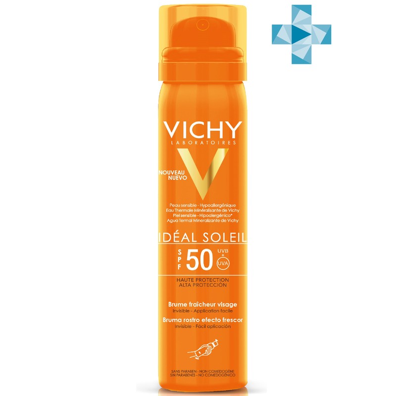 Инструкция по применению Vichy Ideal Soleil спрей-вуаль 75мл д/лица SPF 50+ освежающ