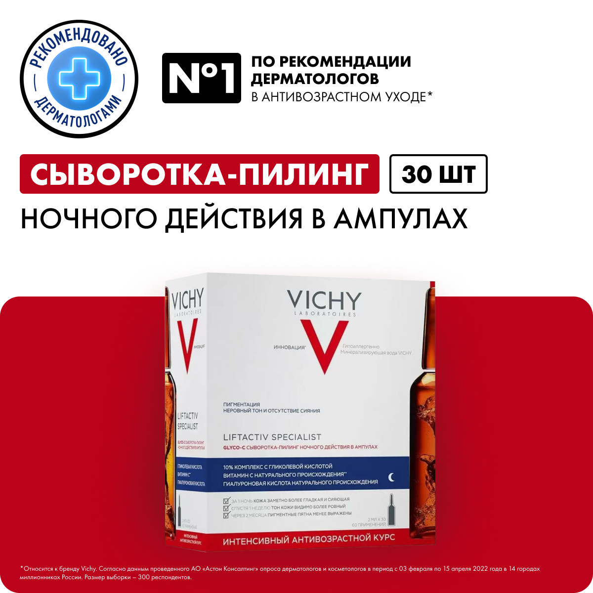 Инновационная сыворотка от Vichy работает пока вы спите! Сыворотка-пилинг Глико-С возвращает коже естественное сияние, улучшает ее тон, деликатно отшелушивает и увлажняет кожу. Снижает выраженность пигментных пятен, разглаживает кожу лица, возвращая ей свежесть и яркость.