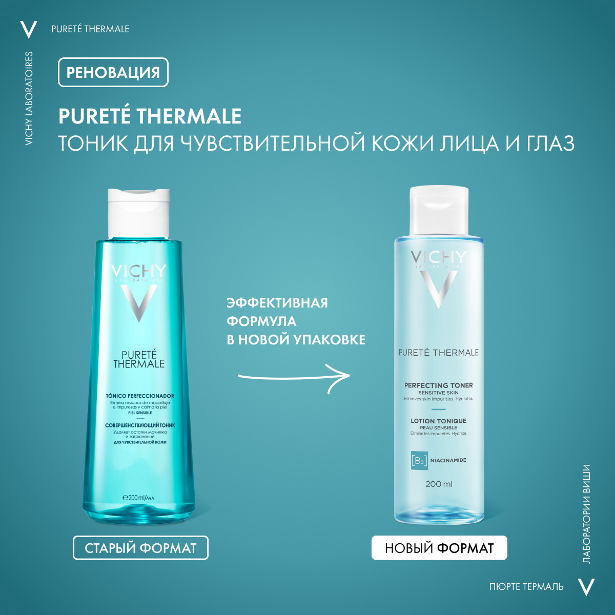 Vichy Purete Thermale Lotion tonique perfectrice (Виши Пюрте Термаль Тоник Совершенствующий) для всех типов, в том числе чувствительной кожи.