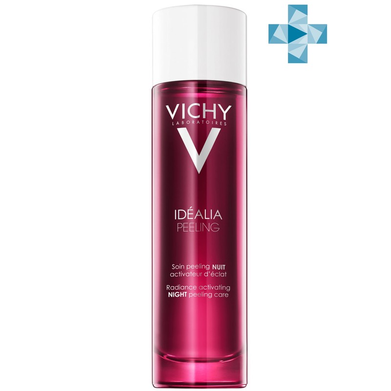 Уникальное сочетание деликатных отшелушивающих компонентов [Гликолевая кислота 4% + Hepes 5%], ферментированного экстракта черного чая, активирующего сияние, и экстракта черники с антиоксидантным действием в комплексе с Минерализирующей термальной водой VICHY.