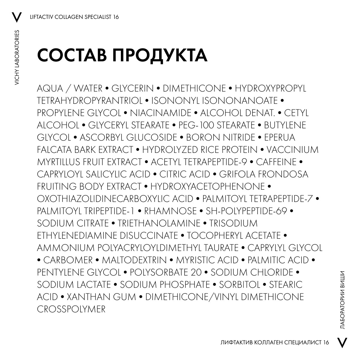 VICHY Liftactiv Коллаген Специалист – это инновация* среди уходовых антивозрастных продуктов. Натуральный крем на клеточном уровне стимулирует собственные ресурсы кожи противостоять старению, активируя выработку коллагена.