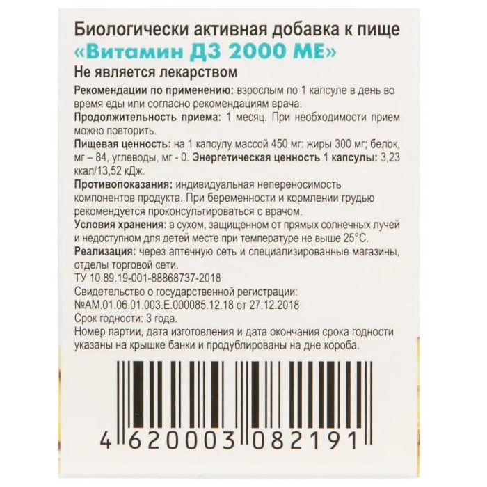 Рекомендуется в качестве биологически активной добавки к пище-источника витамина Д3.