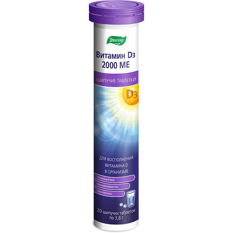 Витамин D3 2000 МЕ шипучие таблетки— высокая дозировка натурального витамина D3 в уникальной* легкоусваиваемой форме шипучих таблеток. Всего с 1 таблеткой вы получите сочный цитрусовый напиток с приятным вкусом, а главное — высоким содержанием витамина D3. Без глютена, без консервантов. Удобный прием для тех, кто испытывает проблемы с глотанием.