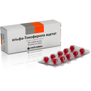 Симптомы: при приеме в течение длительного периода в дозах 400-800 ЕД/сут. (1 мг=1,21 ME) - нечеткость зрительного восприятия, головокружение, головная боль, тошнота, повышенная утомляемость, диарея, гастралгия, астения; при приеме более 800 ЕД/сут. в течение длительного периода - увеличение риска развития кровотечений у больных с гиповитаминозом К, нарушение метаболизма тиреоидных гормонов, расстройства сексуальной функции, тромбофлебит, тромбоэмболия, некротический колит, сепсис, гепатомегалия, гипербилирубинемия, почечная недостаточность, кровоизлияние в сетчатую оболочку глаза, гемморагический инсульт, асцит.